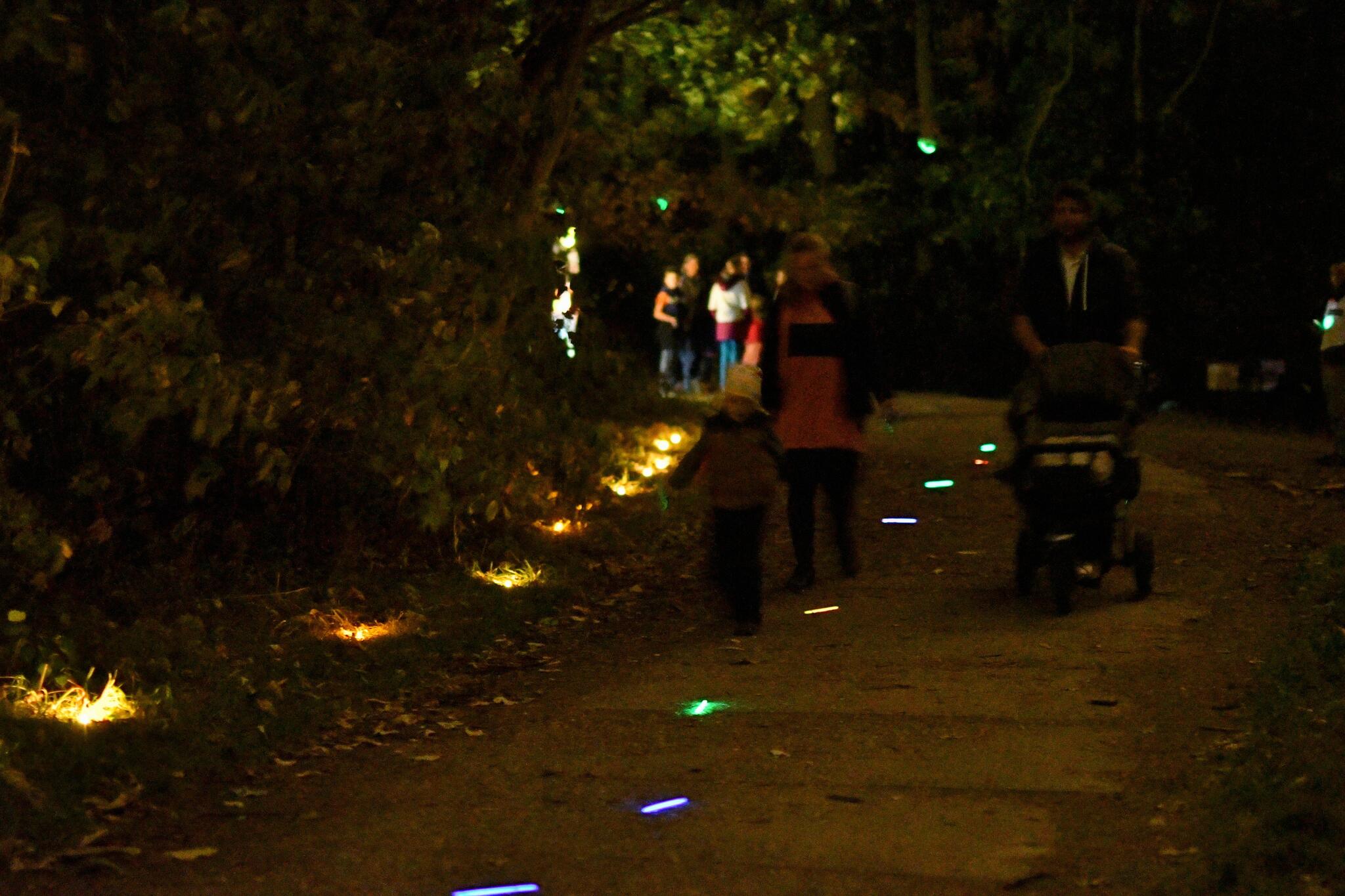 V sobotu 7. října to byl poměrně větrný ale přesto ještě teplý podvečer, kdy se Ďáblický háj na Praze 8 začal plnit dětmi – čtrnáctý ročník akce Lesem ke hvězdám právě začal! U startu bylo nejprve možné se zastavit u ohně, a ještě si před cestou opéci buřta. A pak už vzhůru do tajů setmělého lesa.